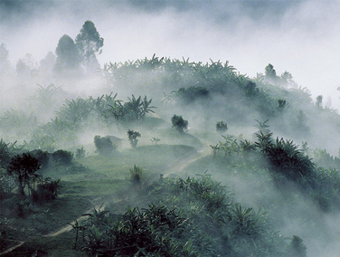 Lake Kivu is so beautiful to meet: a vast inland sea enclosed by the steep, green terraced hills that are so characteristic of rural Rwanda. Along its shores lie three resort towns, Gisenyi, Kibuye and Cyangugu, connected by a wild roller-coaster road that tumbles through lush plantain fields and relic patches of misty rainforest to offer sweeping views over the shimmering lake.